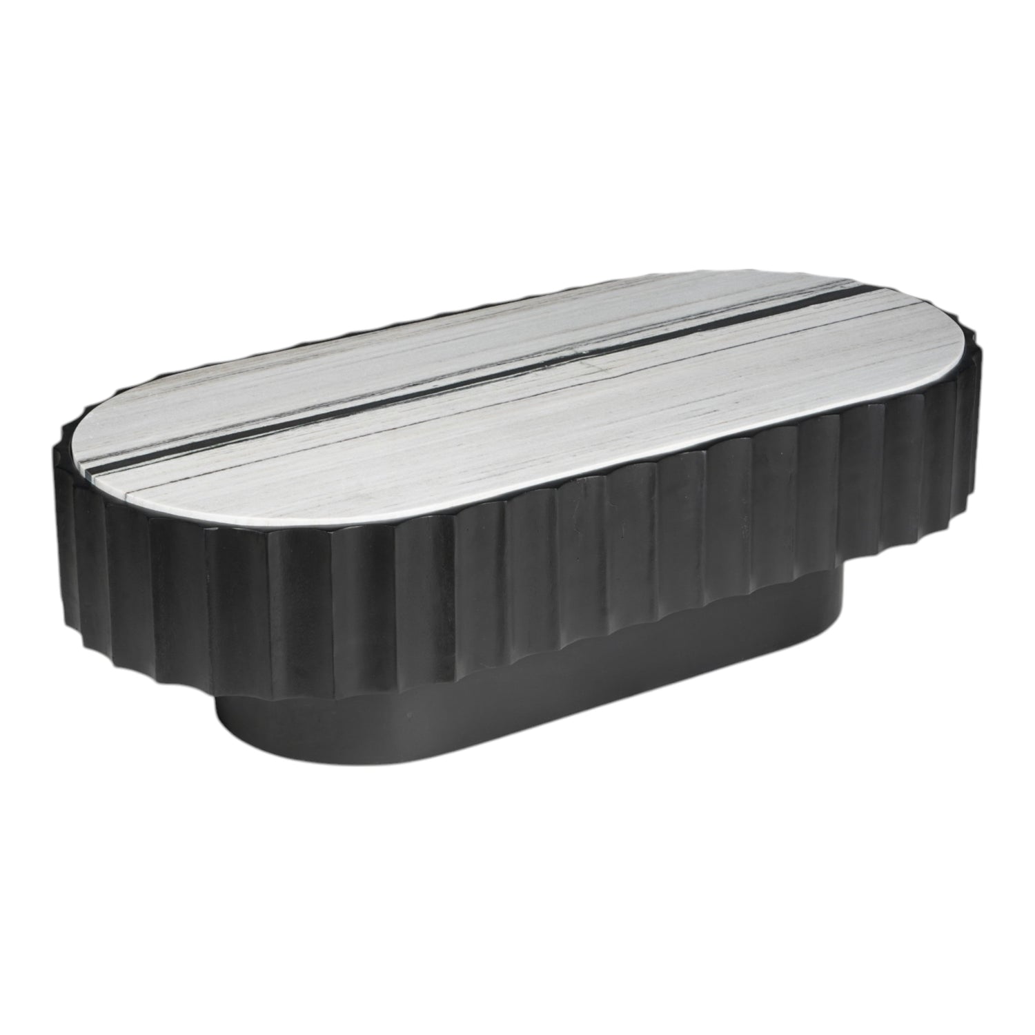 55" Panda Stone Marble And Wood Coffee Table, Blk