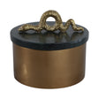 5x5" Round Marble & Metal Box With Snake, Green/go