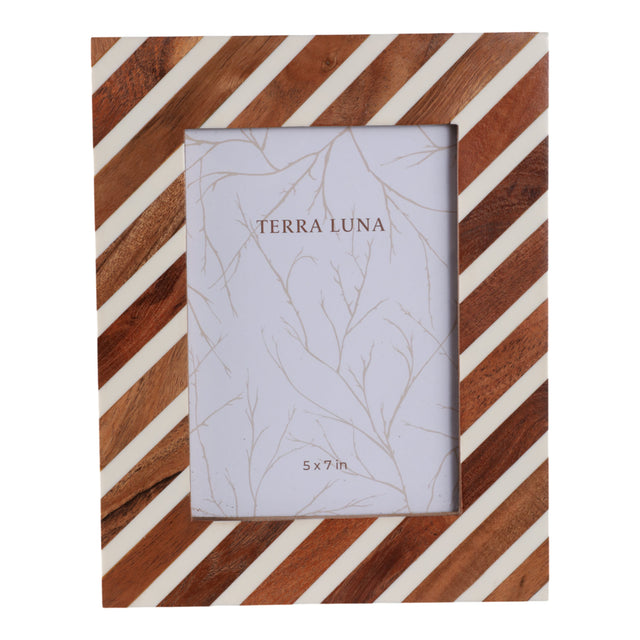 5x7 Diagonal Lines Photo Frame, Natural/ivory