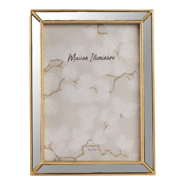 5x7 Resin Mirrored Beaded Border Photo Frame, Gold
