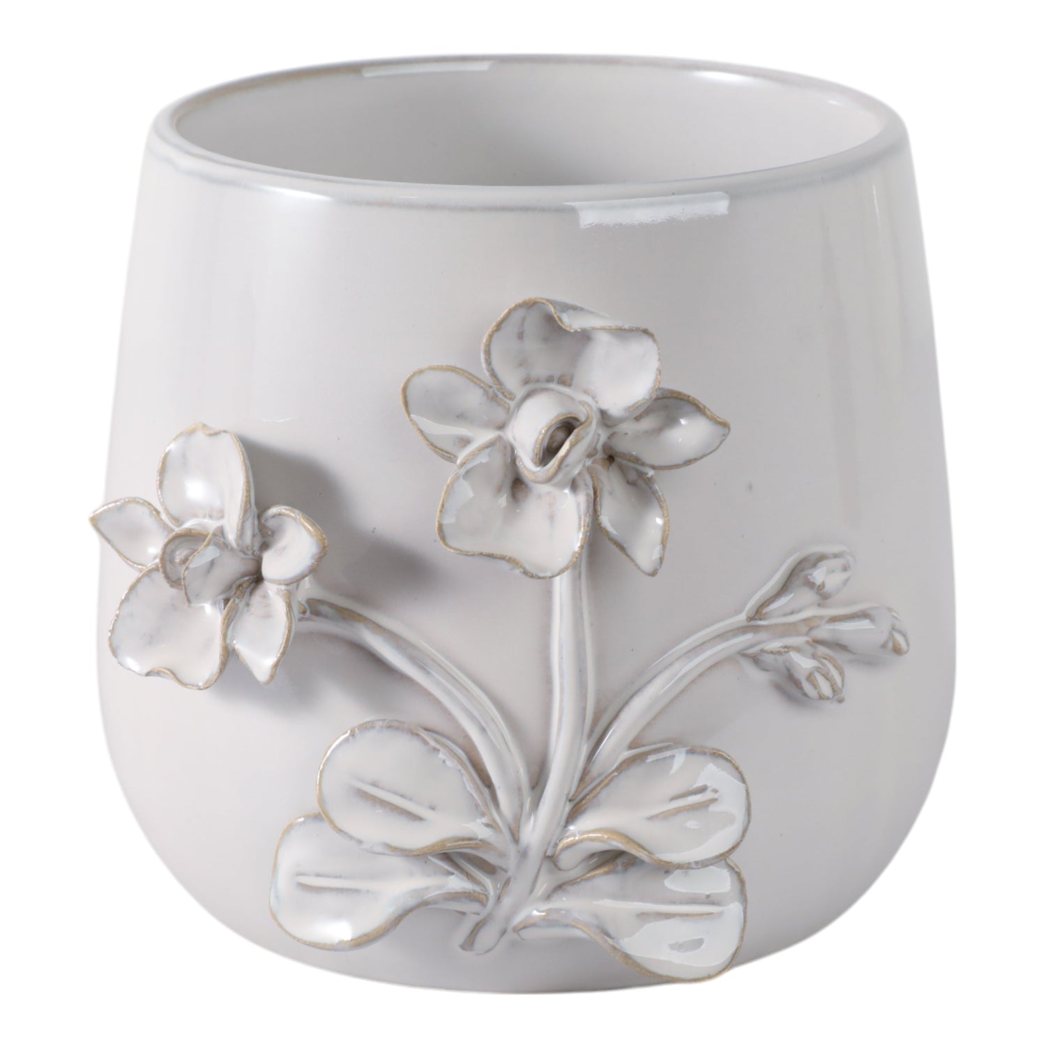 7" Flower Applique Planter, Ivory is backordered and will ship as soon as it is back in stock.