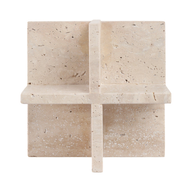 8X8" TRAVERTINE GEO OBJECT, TAN