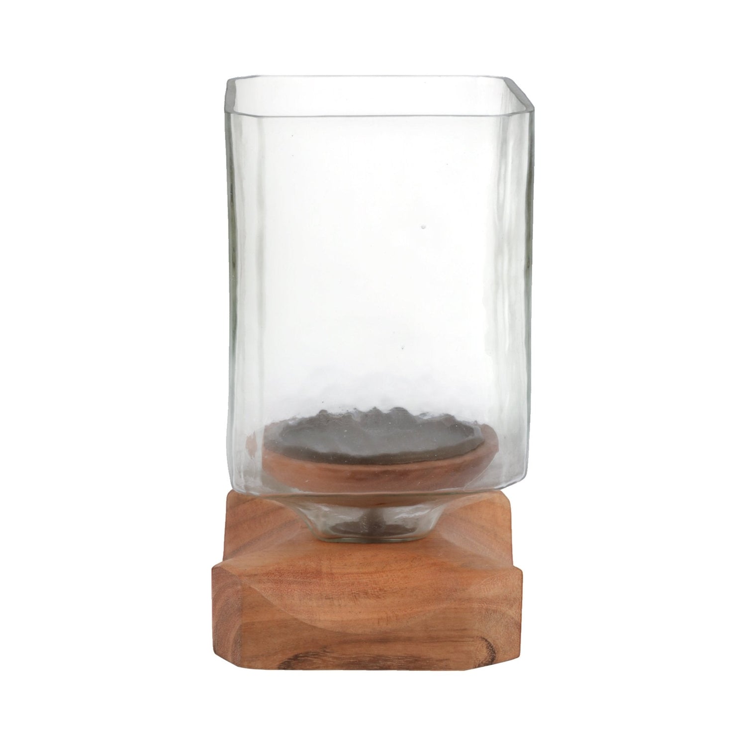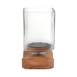 9" Jarvie Small Wood & Glass Candle Hurricane,brwn