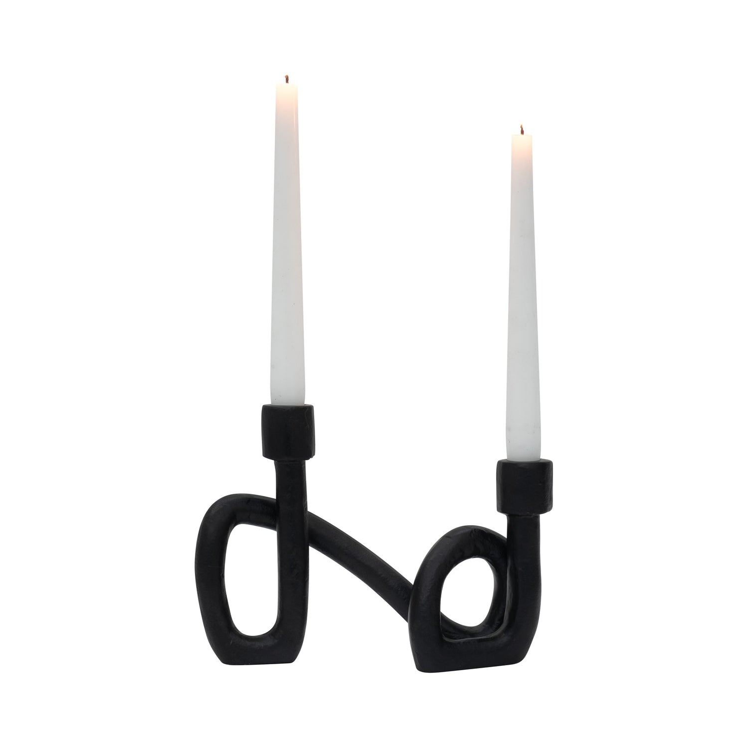 9" Swirled 2 Taper Candleholder, Black