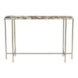 A console table that's worthy of being in a museum. The Agate Console Table's clear-cut agate tabletop reveals earthy tones of the stone's natural color and sparkle. Paired with a brass finished, solid iron frame, this table is both chic and sophisticated.