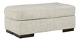 Decidedly modern with a sense of relaxed ease, the Alesandra ottoman looks at home in so many different places and spaces. Sporting a subtle chevron texture, the parchment-tone upholstery takes neutral to new heights. Providing a highly distinctive look: low-to-the-floor block feet in a warm wood-tone finish.