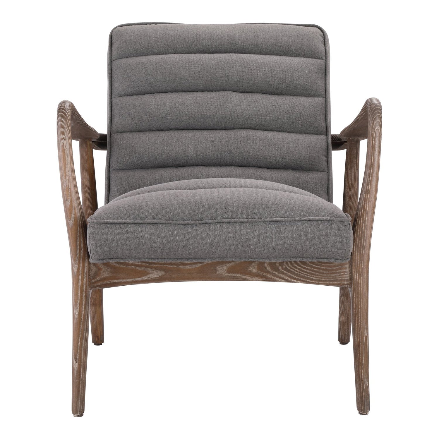 Sit down and take a load off with the Anderson Arm Chair. Its rolled, tufted seating and slim side arms make it the perfect spot to enjoy a book or a cocktail. This dark grey contemporary modern chair is made from a solid construction of ash wood and fabric upholstery.