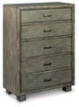 Made of wood, engineered wood and engineered wood veneers;Smoky gray finish;Satin nickel-tone hardware;5 smooth-gliding drawers with dovetail construction;Small Space Solution;Includes tipover restraint device,Chest of Drawers