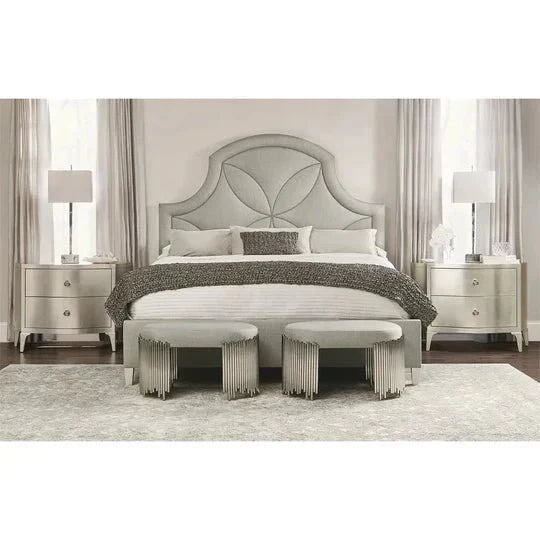The Calista Bench's imaginative design showcases a captivating stainless steel base that adds a touch of glamour to its minimalist form. The juxtaposition of the soft upholstered seat and the gleaming metallic base creates a piece that is both functional and visually arresting. Its compact dimensions make it versatile for various settings, including bedrooms, entryways, or as an accent in living spaces.
