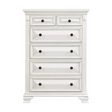 The Calloway 6-Drawer Chest is the perfect addition to your bedroom! This vertical chest comes with six, spacious drawers, more than enough storage space to store away your belongings. The two top drawers are felt lined, protecting your more delicate belongings. The bottom drawers are cedar lined and feature a dust proofing layer to help protect your clothes. Raised drawer fronts add an extra element of design to this already stunning set. The dark metal finish hardware pairs perfectly with the white finish, making this transitional group a staple in your home for years to come.