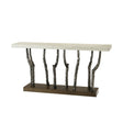 Contemporary console table made of figured ash available in Dune or Earth with cast metal legs in our Volcanic finish and done with our stone-like porous Mineral Finish at the top.