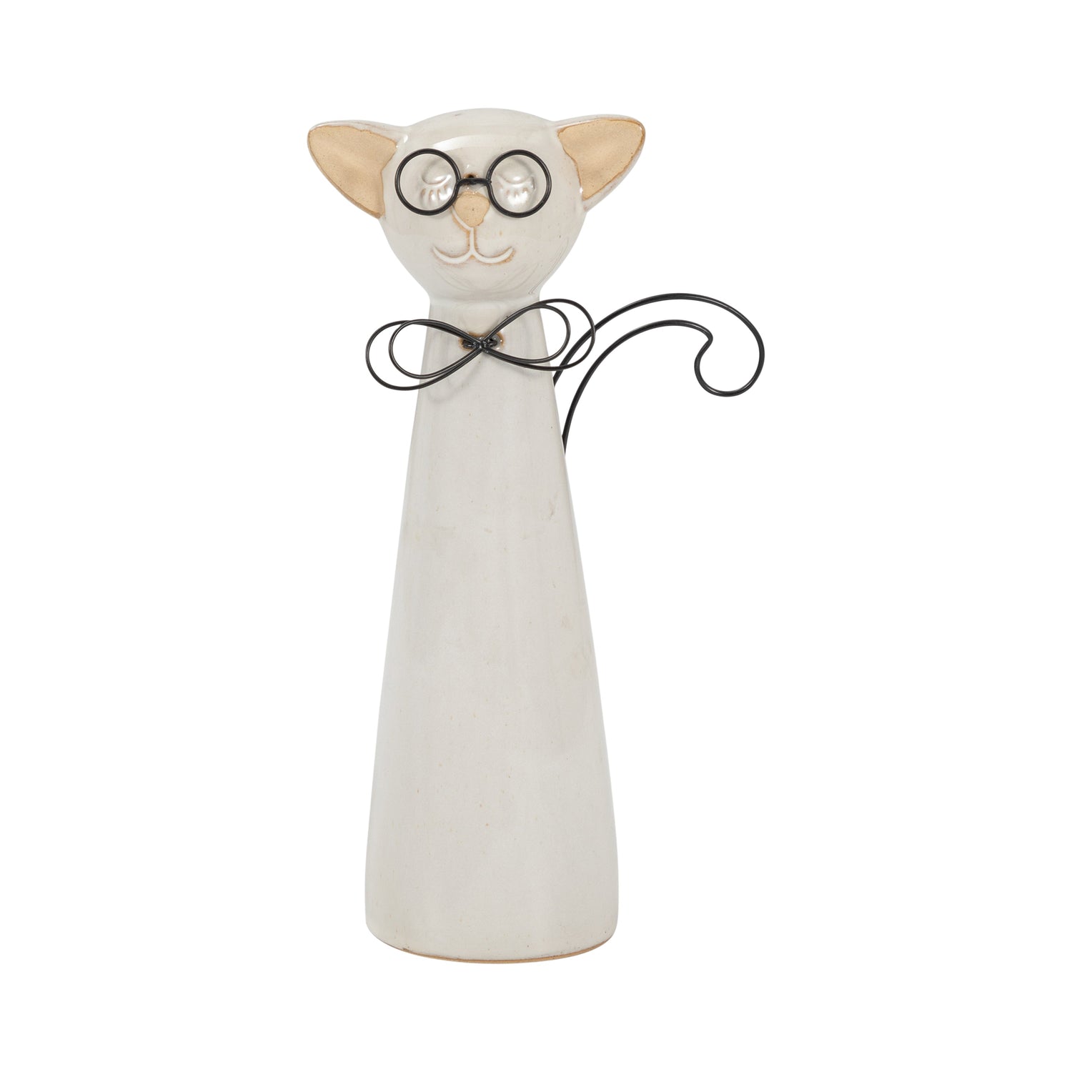 CER, 11"H CAT W/ GLASSES, BEIGE