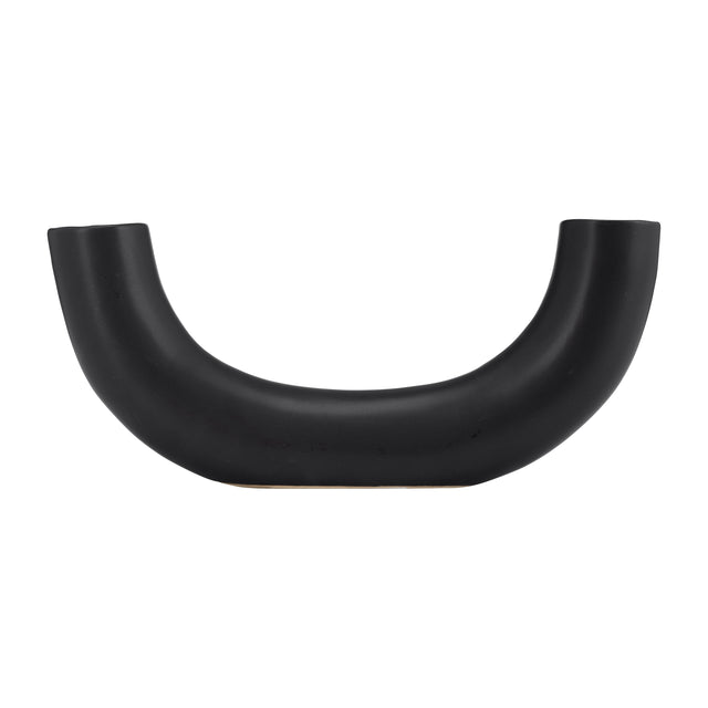 CER, 12"L HALF CIRCLE VASE, BLACK