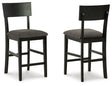 Upholstered Barstool (2/CN),,Wood frame;Matte black finish;Foam cushioned seat with charcoal gray woven polyester upholstery; easy cleaning;Assembly required