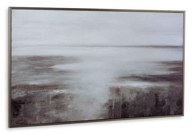 Chasemont Wall ArtCoastal meets casual contemporary in the Chasemont wall art. This piece recalls the placid movement of water, transforming shades of gray, taupe and white into a peaceful waterscape. Framed and ready to hang, it ushers a soothing seaside mood into your space.