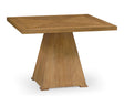 A end table with a square top on a pyramidal base finished in wire brushed medium brown oak.