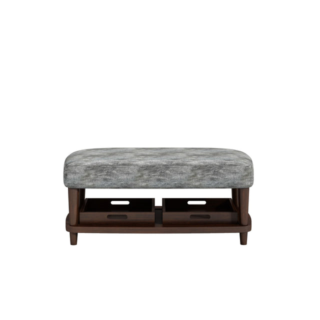 This functional ottoman from Roots combines comfort and practicality with its soft cushioned top and integrated lower storage trays. Its stylish design and multi-purpose features make it a perfect addition to organized and modern living spaces.