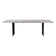 With a live edge, the Evans Dining Table is the center of the fun. Made with a white washed solid acacia wood and dark iron legs, this table features its own unique combination of knots and grains. Whether you're looking for an industrial or contemporary modern piece, this table will be the perfect fit.