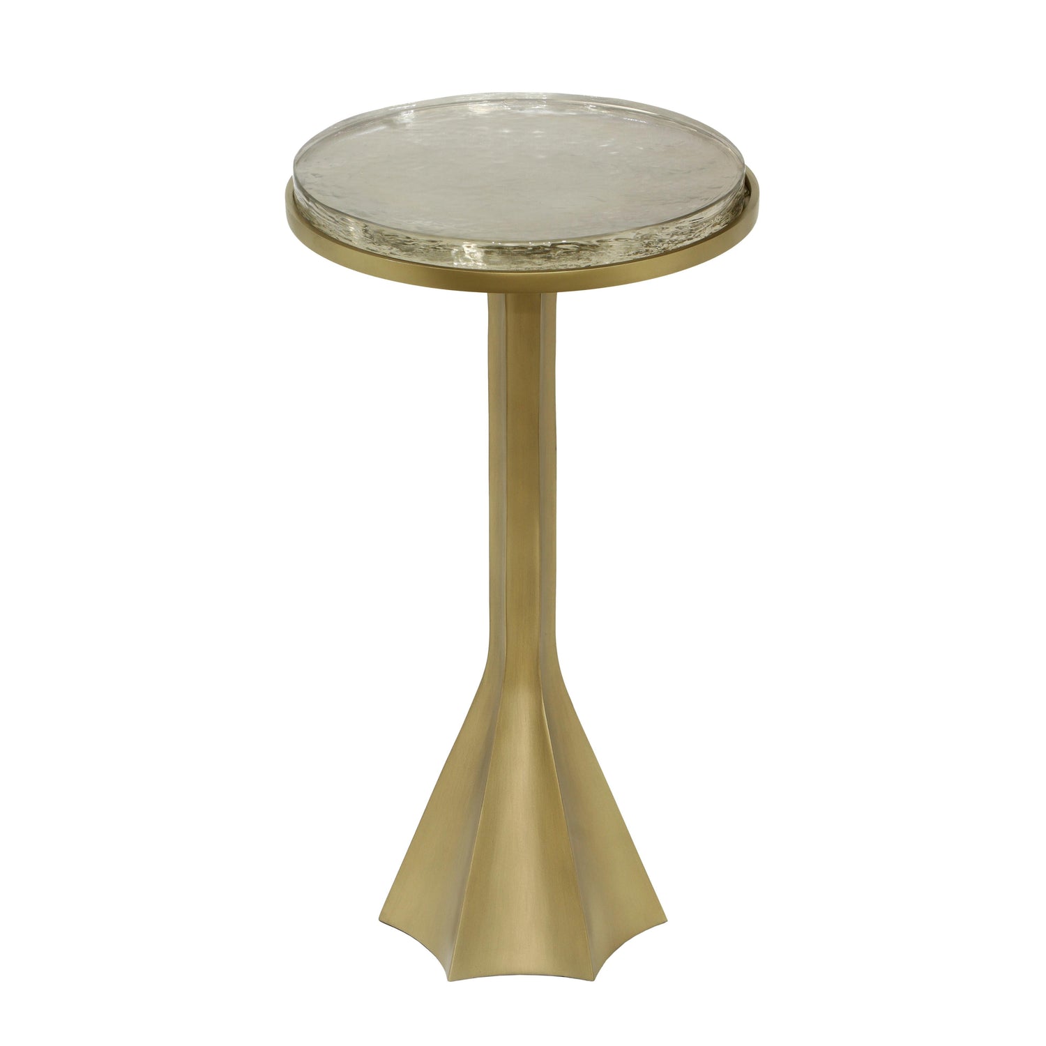 Elevate your living space with the Gabrielle Round Side Table, where elegance meets artistry! The brass-colored aluminum base adds a touch of timeless sophistication and the swelled base adds a touch of whimsey and visual interest. The glass table top is sturdy and durable, made to support your snacks, beverage, or decor piece and last a lifetime.