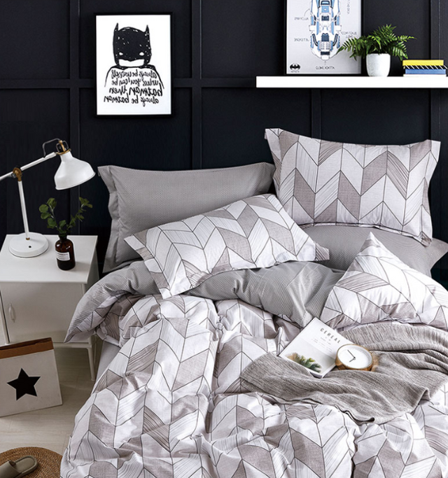 Geometric Pattern Grey & White Bedding Set-KING