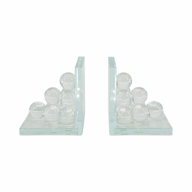 GLASS, S/2 6" ORB BOOKENDS, CLEAR