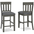 Upholstered Barstool (2/CN),,Made with solid wood;Antiqued gray finish;Upholstered in gray textural polyester fabric;Cushioned foam seat;Contoured comb-back design;Assembly required