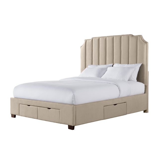 The Harper Upholstered Storage Bed is an essential piece you bedroom needs. The headboard is designed with clean, channel tufted lines and chrome, nail heads line the outer trim. The prominent 68" headboard provides a grand statement for your bedroom. Four storage drawers surround this bed, with two drawers in the footboard and one on each side rail. Microfiber fabric wraps this entire bed frame and is effortless to clean! This bed also is available in multiple color options to fit many room designs. The best part is, this bed does not require a box spring! So, toss on your mattress and get ready for comfort.