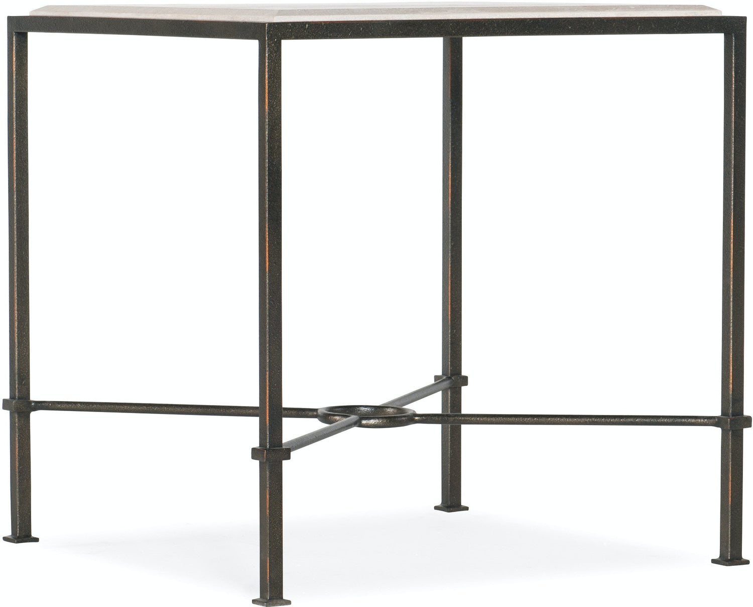 In a light-and-airy style that’s a breath of fresh air, this distinctive end table has a dark charcoal textured metal frame, base and X-stretcher and a creamy beige marble top in a blend of neutrals to fit in a wide range of interiors.