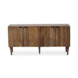 An elegant mix of organic allure and practical function, the Infinity sideboard is a sleek, contemporary design with two adjustable interior shelves that provide plenty of versatile hide-away storage options. Unexpected pops of pattern and playfulness circle its four swinging doors, adding depth and texture to the dark, moody, solid mango wood construction.