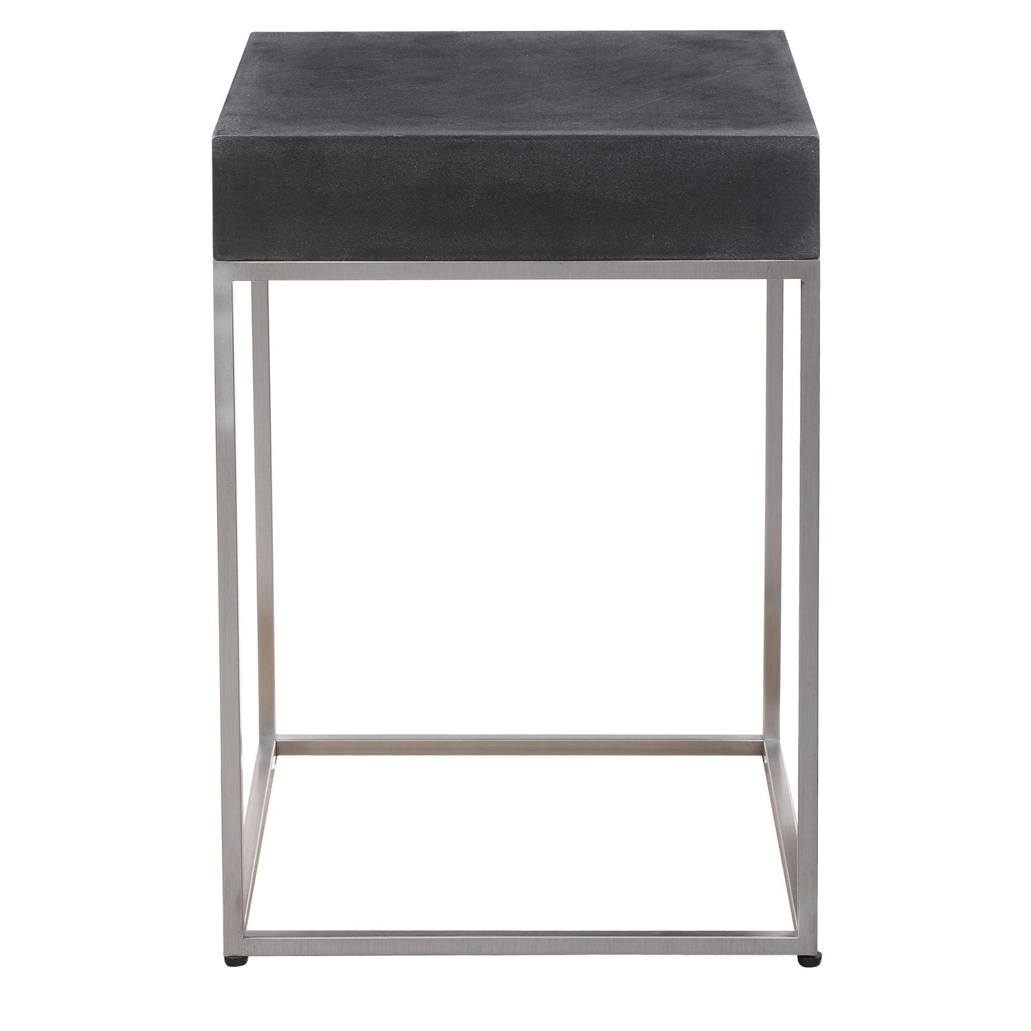 Sleek And Contemporary, This Accent Table Features A Black Concrete Look Atop A Brushed Nickel Stainless Steel Base.