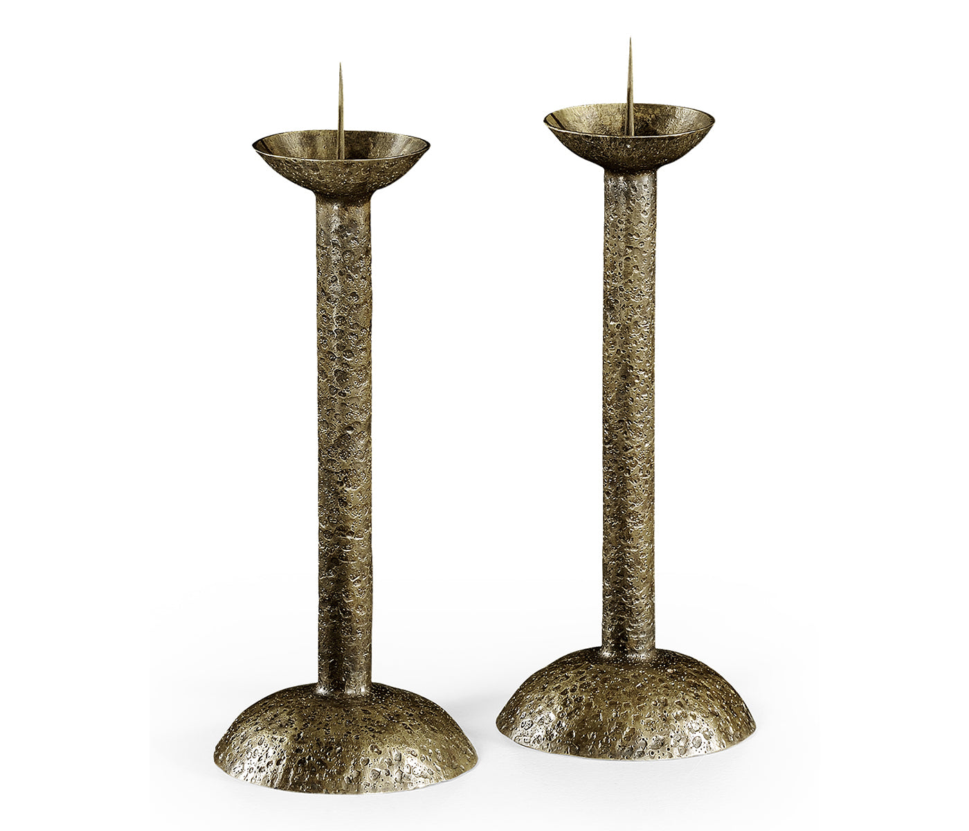 JC Edited - Anvil Collection - Pair of Hand Hammered Brass Candlesticks