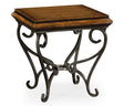 JC Edited - Artisan Collection - Rustic Walnut Square Side Table with Wrought Iron Base