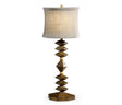 Modern walnut geometric shapes create the base for this table lamp, with brass details and a silk shade. (Old salescode: 495358)