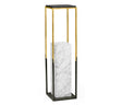 JC Modern - Fusion Collection - Contemporary Square Ebonised Oak & Brass Pedestal with White Calcutta Marble Centre