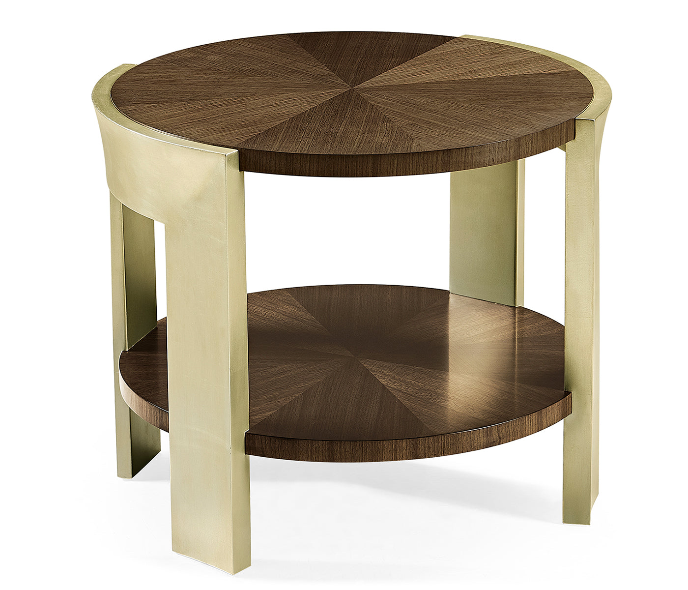 JC Modern - Gatsby Collection - Gatsby Contemporary Round Dark Grey Walnut & Champagne Silver-leaf End Table
