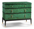 Step into the world of modern design with the Jacques chest. Its clean lines, bold contrasts, and minimalist elements define its contemporary charm, making it a statement piece that seamlessly blends with contemporary interiors. Experience the allure of dyed burl veneer in a mesmerizing emerald finish. The hand-rubbed veneer adds a touch of opulence while highlighting the natural beauty of the wood's texture. This rich and vibrant hue draws attention and sets the tone for an environment of luxury. Brass accents not only enhance the aesthetics but also elevate the chest, giving it an air of elegance that complements its contemporary design.