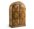 The Jacques bar armoire is a fusion of classic and contemporary elements that create a remarkable piece of functional art. Crafted from crotch cerejeira and flat-cut mahogany veneers, this bar cabinet boasts a stunning array of textures and patterns. The natural cerejeira finish enhances the wood's inherent beauty, giving the cabinet an organic and timeless appeal. Behind its arched doors that feature custom brass hinges, you’ll find an array of storage solutions for your entertainment accompaniments showcased in antiqued mirror, stainless steel, and eggshell detailing. The lighted interior and stone worktop ensure a suitable workspace for crafting delicious concoctions. Become a master of hosting with the Jacques bar armoire.