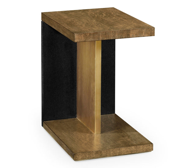 Rectangular cut-out end table in langkawi light brown oak with a centre brass support. (Old salescode: 500073-LLB)