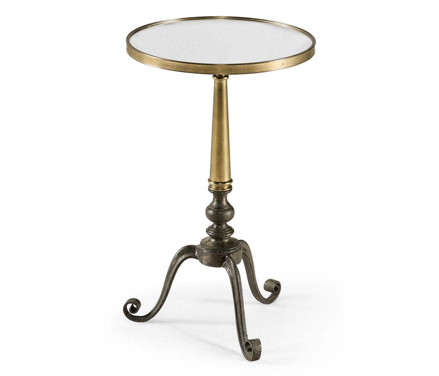 End table in antique brass finish with an antique mirror top. (Old salescode: 500062-BRS)