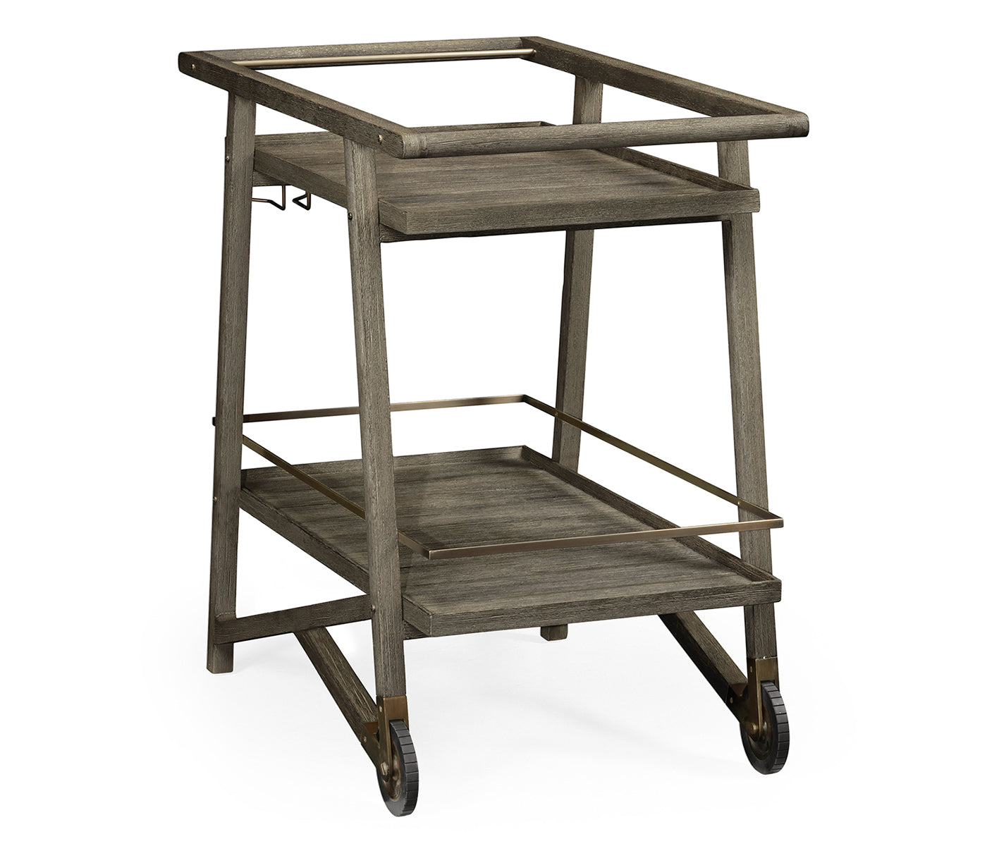 JC Outdoor - Hampton Collection - Tiered Grey & Antique Brass Bar Cart with Wheels