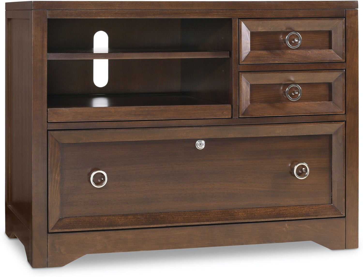 Crafted in Quartered Walnut Veneer with a rich wood finish, the Kinsey Utility File is in a fresh modern style with a crisp and tailored silhouette and circle-motif hardware. A versatile piece that will keep you organized and can go in any space, the file has one adjustable shelf, one pullout tray with a pullout space for a printer, two utility drawers with two removable dividers and one file drawer with pendaflex letter/legal filing system and an area for extra storage.