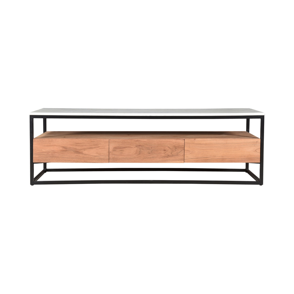 A marble marvel. The Kula’s tabletop is made of highest quality banswara marble, a perfectly smooth surface with all the individuality of the stone left intact. Kula’s solid acacia body features three soft-close drawers for all your storage needs while a sturdy iron frame supports its blocked silhouette. A marble marvel that embraces mixed materials.