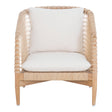 Named in tribute to the skilled weavers of Panama, Kuna showcases the traditional Lloyd Loom technique set against a contemporary teak wood frame. Over time, this gorgeous wood turns into a darker patina which looks all the more stunning contrasted against the clean white fabric upholstery of this versatile design. Easy-to-wash removable cushions keep this outdoor lounge chair bright, beautiful and ready for the sun.