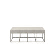 This sophisticated cocktail ottoman from Roots features a modern open-frame metal base and a soft cushioned top with a textured fabric finish. Its sleek and versatile design makes it ideal for use as a coffee table, footrest, or additional seating in any contemporary living space.