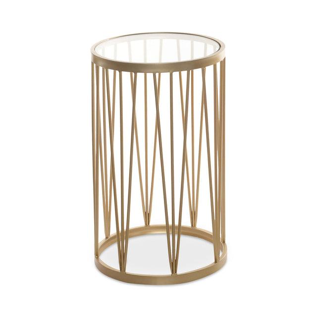 Art Deco luxe. The Lali accent table’s angular legs echo the details found in Art Deco architecture and art, lending a sense of movement to this piece. With a round tempered glass tabletop, the eye is drawn to the cleverly crafted frame, a perfect combination of minimalism and maximalism. From the simple materials of glass and metal, Lali is a living room accent ready to inspire thought and relaxation.