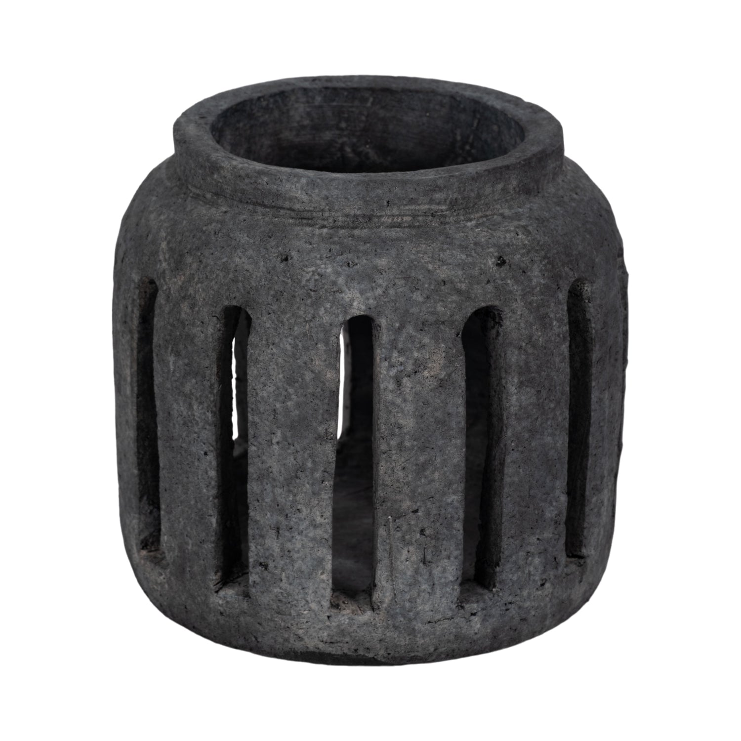 8" ROUND LANTERN HURRICANE WITH OPEN SLATS, BLACK