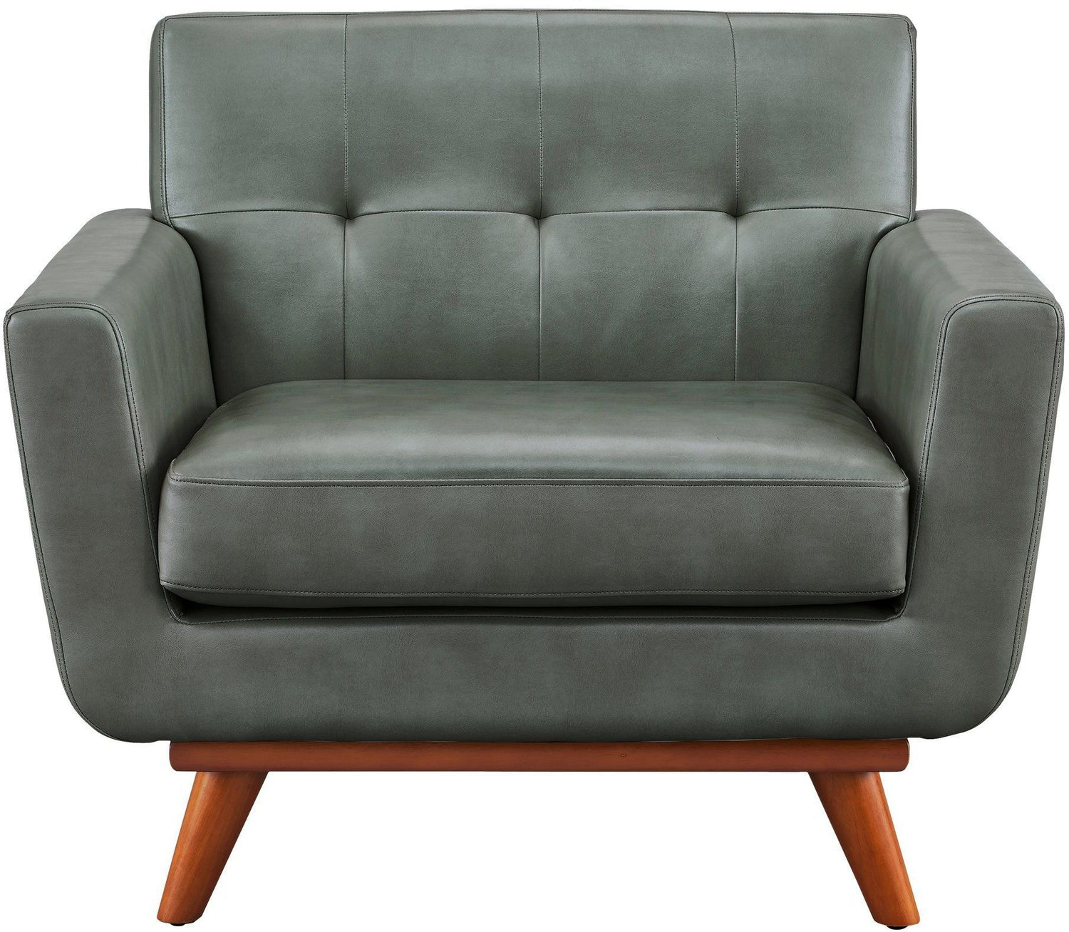 The Lyon chair captures the essence of Mid-Century style that refuses to fade into obscurity. The gorgeous smoke grey Vegan Leather is welcoming and adds charm to any room. The cushioned arms provide added comfort, while the small scale tufting adds a pop of personality. Handcrafted the Lyon collection will undoubtedly add style to your space, while the kiln dried solid wood frame will assure years of support and comfort.