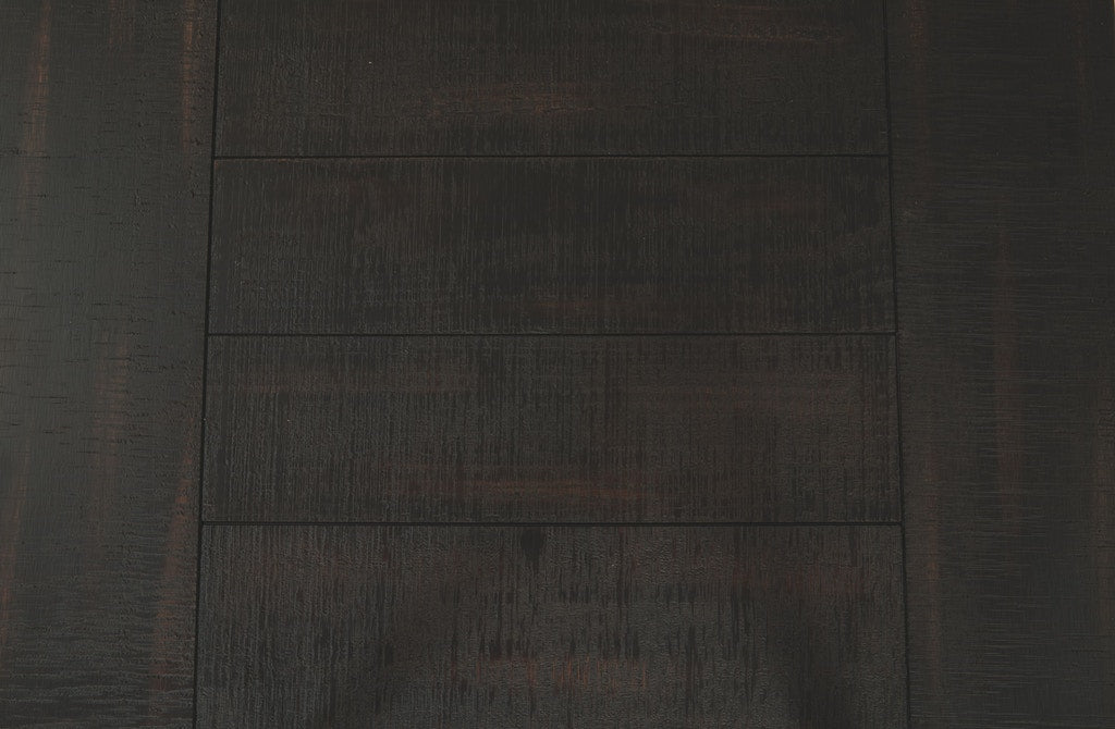 Sofa table made of veneers, wood and engineered wood;Rich black finish with show-through effect;Lower shelf provides essential display and storage space;Made of veneers, wood and engineered wood;Saw cut planking;Rustic wirebrush details give the table a weathered aesthetic;Assembly required