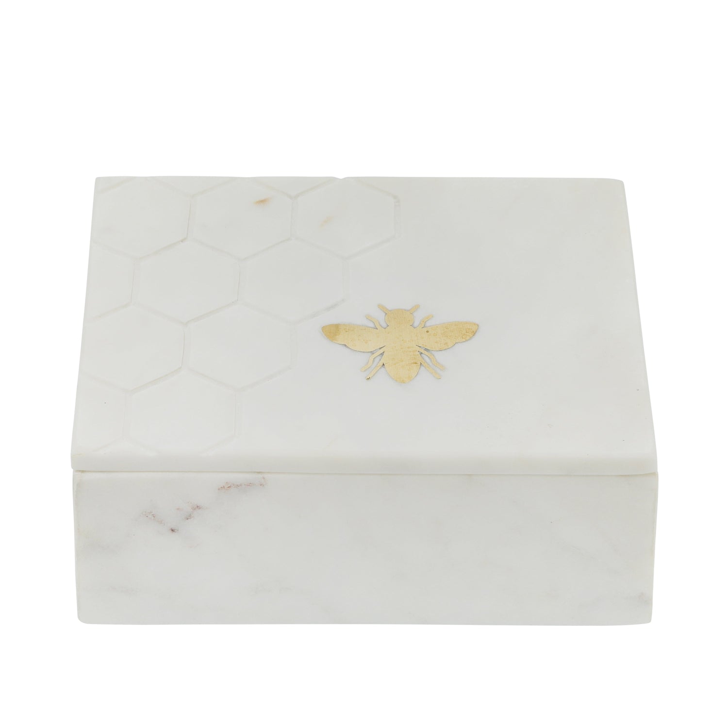 MARBLE 7X5 MARBLE BOX W/ BEE ACCENT WHITE