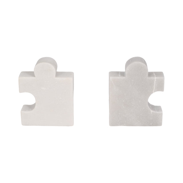 Marble, S/2 5" Puzzle Piece Bookends, White
